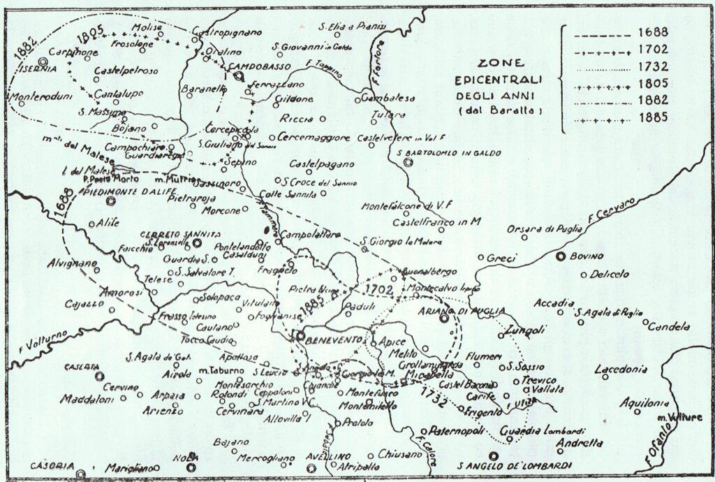 Il terremoto che colpì il Sannio quella sera raggiunse un’intensità compresa tra il X e l’XI grado della scala Mercalli, con una magnitudo stimata intorno a 7.0. L’epicentro fu localizzato nell’area tra Benevento e Cerreto Sannita, in una zona ellittica che si estendeva per circa 70 chilometri da sud-est a nord-ovest. Ma gli effetti si avvertirono su un territorio vastissimo: le scosse raggiunsero Molise, Abruzzo, Lazio, Basilicata e Puglia, su un’area di oltre 80.000 chilometri quadrati.